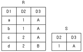 52. 다음 R과 S 두 릴레이션에 대한 Division 연산의 수행 결과는?