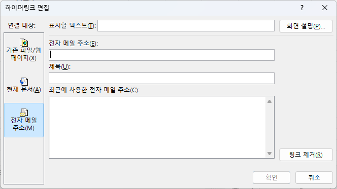 매크로는 특정 작업을 자동화하기 위해 설정된 스크립트이므로, 바로 가기 키 자체를 하이퍼링크로 연결할 수 없으며, 대신 매크로 실행 버튼을 삽입하거나 VBA 코드와 연동하는 방식이 사용됩니다.