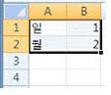22. 다음 중 아래의 워크시트에서 [A1:B2] 영역을 선택한 후 채우기 핸들을 이용하여 [B4]셀까지 드래그 했을 때 [A4:B4] 영역의 값으로 옳은 것은?