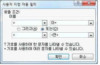 23. 성명 필드에 아래와 같이 [사용자 지정 자동 필터]의 조건을 설정하였다. 다음 중 결과로 표시되는 성명으로 옳지 않은 것은?
