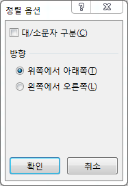 ② 정렬 옵션으로 정렬의 방향을 '위쪽에서 아래쪽' 과 '왼쪽에서 오른쪽' 으로 지정할 수 있다.