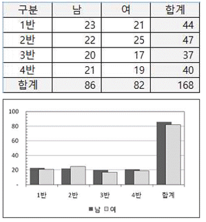 ③ 데이터 계열로 “남”과 “여”가 사용되고 있다.