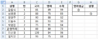 영어점수>=AVERAGE(영어점수목록의 절대참조)