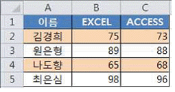 EXCEL과 ACCESS 열을 검사하는 것이기에 열의 절대참조인 $B 와 $C를 입력한다