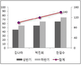 ③ '하반기' 계열의 '한길수' 요소에 데이터 레이블이 표시되어 있다.