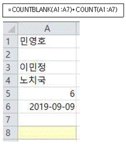 COUNTBLANK(범위) : 범위 중 비어있는 셀의 개수