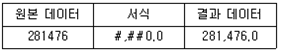 2. 맨끝 콤마(,) 한개 : 천단위 절사 표현(표현제한시 반올림)