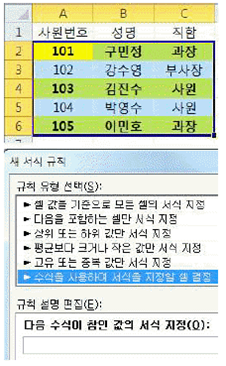 31. 아래 워크시트와 같이 짝수 행에만 배경색과 글꼴 스타일 '굵게'를 설정하는 조건부 서식을 지정하고자 한다. 다음 중 이를 위해 아래의 [새 서식 규칙] 대화상자에 입력할 수식으로 옳은 것은?